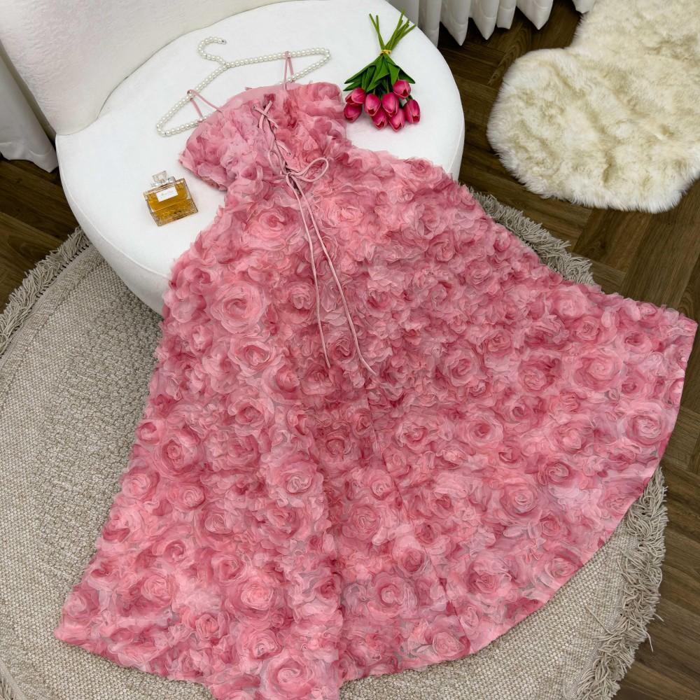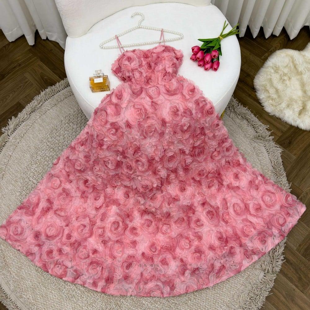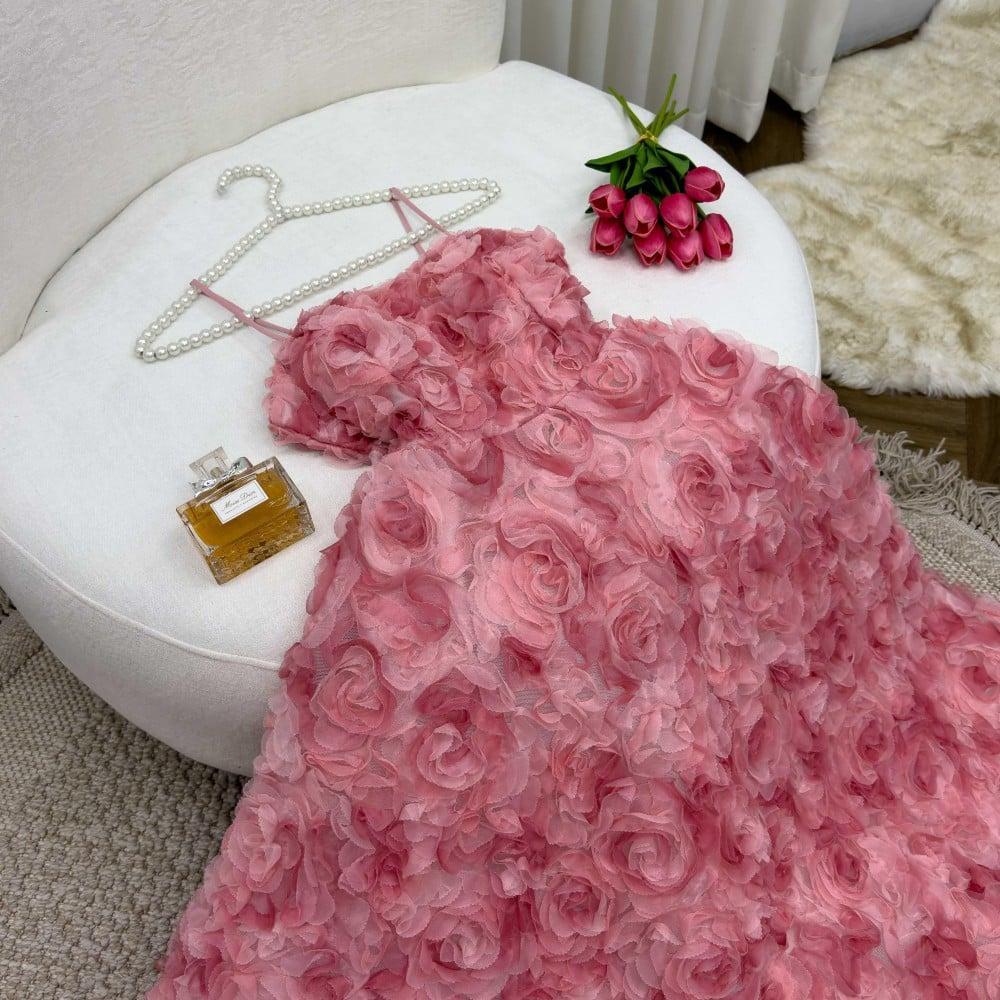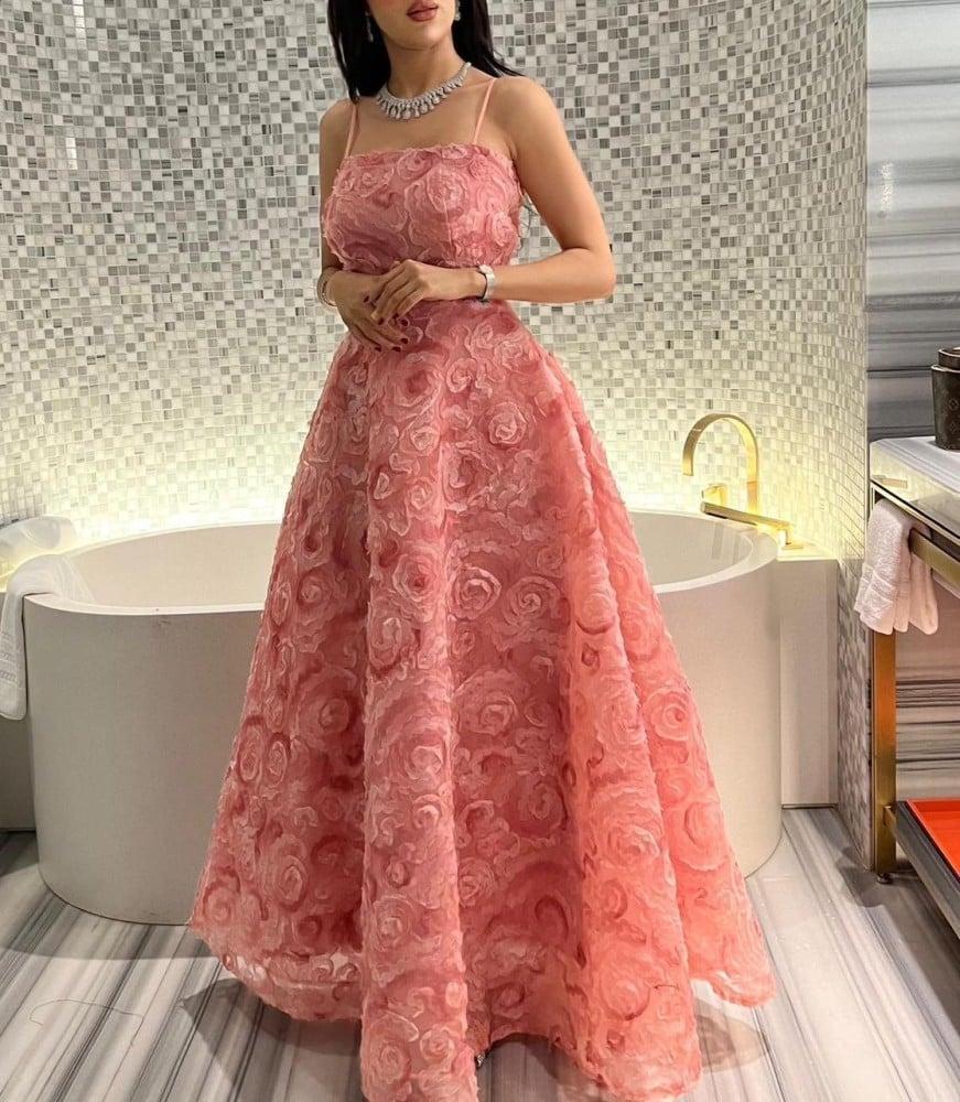 فستان وردي منفوش للسهرات